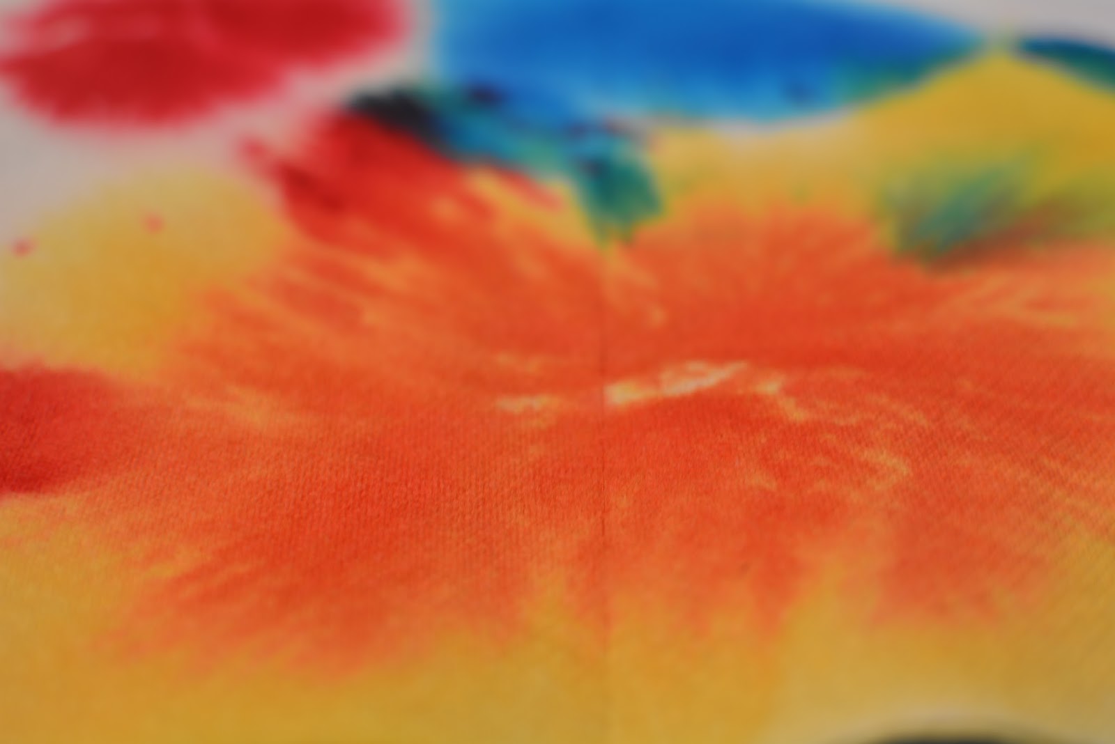 Sunday: Tie dyed paper towels from when we dyed gifts for some friends. The paper towels looked so cool, we kept them to hang up as art, but they have not found their place yet.